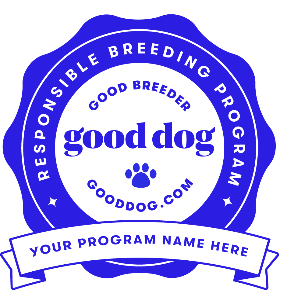 We value transparency and ethical breeding practices. That’s why we choose to list our program on Good Dog, a trusted platform that helps connect families with responsible breeders. Our Good Dog profiles offers additional insight into our breeding practices, health testing, and available puppies. There is also financing available through our Good Dog.